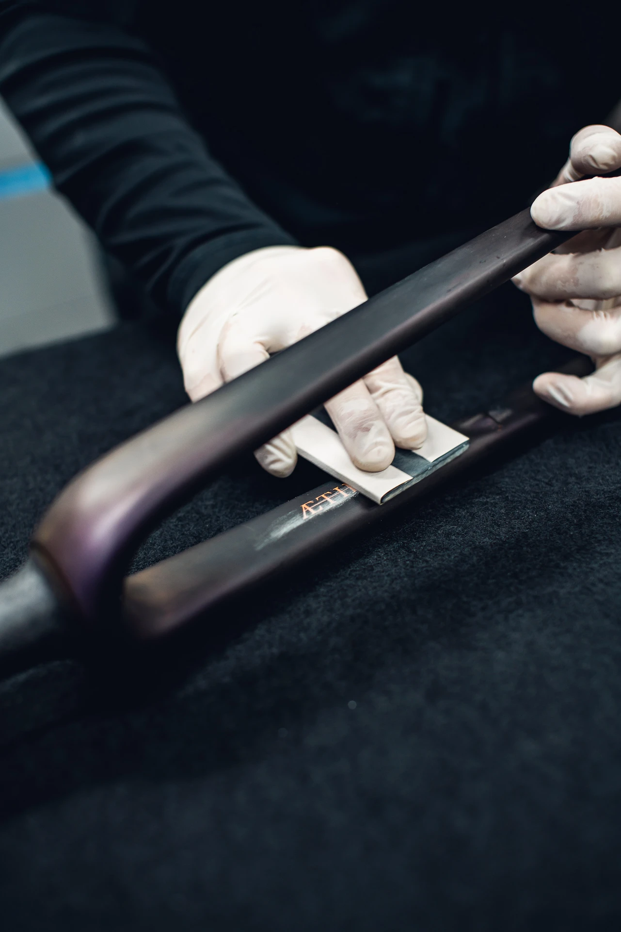 Jeśli jednak klient życzy sobie, aby karbon pozostał widoczny, po zakończeniu szlifowania mechanicznego Przechodzimy do intensywnego szlifowania ręcznego.