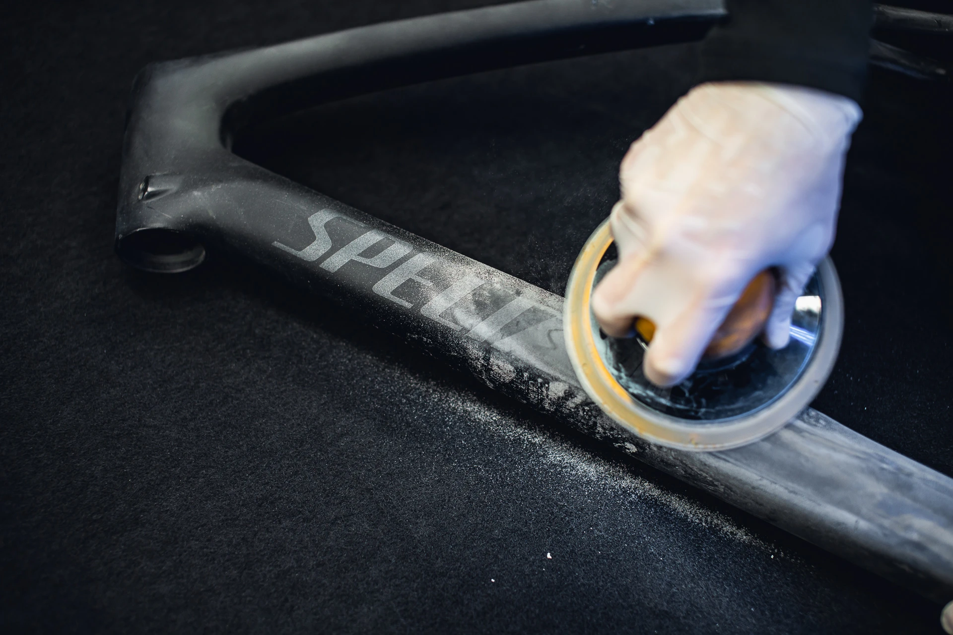 Po wyprodukowaniu przez producenta ramy z formy otrzymujemy surową ramę karbonową, która wymaga dalszego etapu obróbki. Pierwszym krokiem jest uzupełnienie mikrodziurek obecnych w surowym karbonie za pomocą specjalnej szpachli. Następnie na ramę nakłada się podkład przyczepnościowy, który zapewnia lepszą przyczepność kolejnych warstw. Kolejnym etapem jest zastosowanie podkładu epoksydowego lub innego wyrównującego, który wygładza powierzchnię ramy.